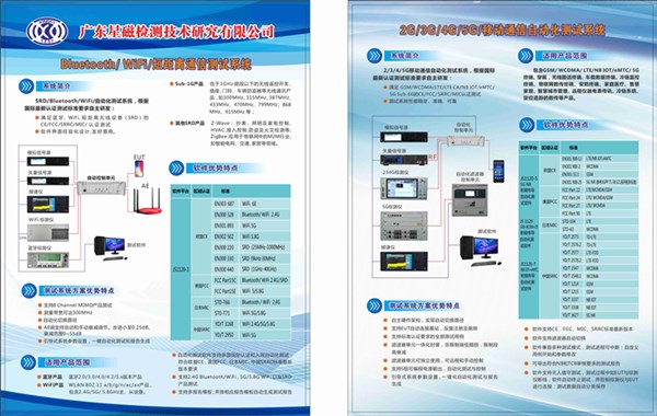 (1)蓝牙/WiFi短距离通信测试系统:满足CE/FCC/SRRC/MIC认证测试;