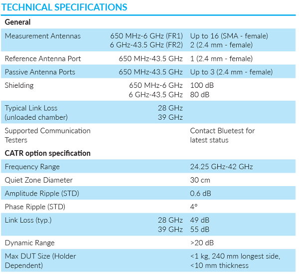 Bluetest CATR选件可在静区内创建一个具有均匀振幅和相位的单平面波,这可以使EIRP和EIS测量符合3GPP NR测试规范。