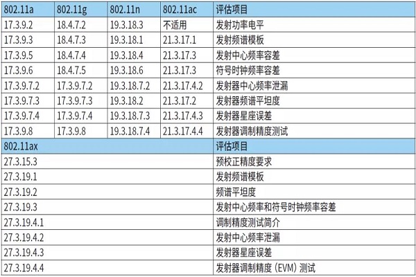 IEEE 802.11 标准中分两部分描述了与 EVM 有关的评估。第 6.1.1.7 节“发射器星座误差”描述了一种计算 EVM 的具体方法。第6.1.1.8 节“发射器调制精度测试”概述了 EVM 并给出了一些必要的 WLAN 设备规范。本文将对这两个项目一同加以介绍。